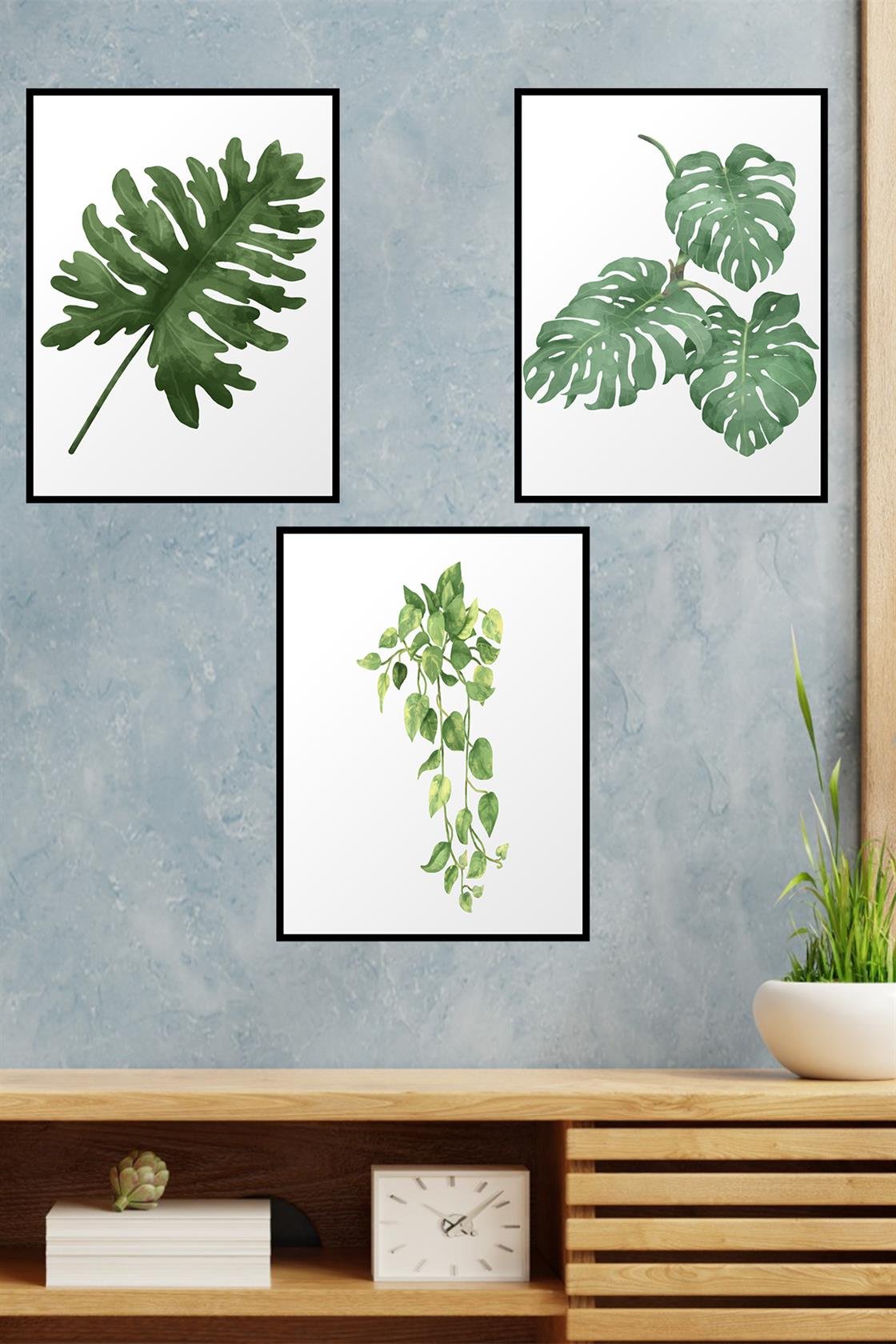 Botanik tarzda 3'lü tablo seti siyah çerceve görünümlü